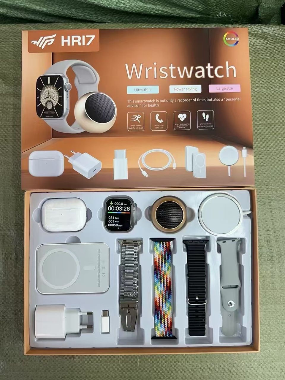 Découvrez la SmartPack HRI7, une montre connectée élégante et performante, livrée avec 12 accessoires essentiels pour une expérience complète : plusieurs bracelets stylés, un mini haut-parleur Bluetooth, des chargeurs rapides, un support magnétique, des écouteurs sans fil et bien plus !